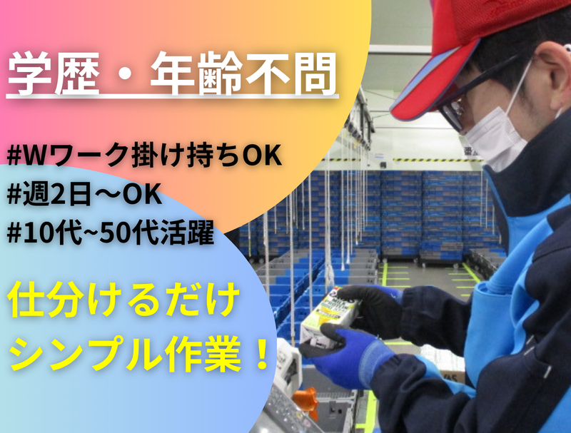 仕事内容 ┌─── \おすすめPOINT/ ───┐ ✅1時または2時〜7時の間勤務できる方募集! 週2日〜なのでWワーク・副業も大歓迎! ✅『日中は別の仕事や学業がある』、 『夜型で日中はゆっくりしたい』など 考えている人におすすめなお仕事! ✅難しい作業はなくコンビニでよくみる 商品の検品や仕分け作業なのでシンプル。 覚えやすく楽なお仕事です! ✅20代・30代・40代の主婦(夫)さん など幅広い年齢のスタッフが働いています! 年齢関係なく、働けるのが魅力です! └─────────────────┘ ╭━━━━━━╮ 未経験でも安心♩ カンタン3STEP! ╰━v━━━━╯ お仕事は、コンビニ商品を 仕分けるだけのシンプル作業! ⏩STEP1 商品のバーコードをスキャン! ⏩STEP2 ランプが点灯! ⏩STEP3 光った場所へ商品を運ぶだけ! \たったこれだけ/ すぐに覚えられるお仕事なので、 バイトデビューの方も大歓迎です! 『未経験だから不安,,,』 『シフトの融通効くのかな,,,』など 働くにあたって不安な部分は解消できます! 様々なスタッフがいるので、 みんなで助け合いながら 一緒にがんばりませんか? ┏━━━━━━━━━━┓ ◆ 深夜給で賢く収入UP ◆ ┗━━━━━━━━━━┛ 午前2時~5時までは ✨時給1,350円✨ 短時間でサクッと稼げるから、 Wワーカーさんにピッタリです!