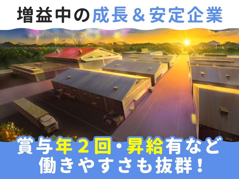 職場環境 ●年間休日123日 ●完全週休2日制(土日祝) ●賞与年2回、昇給あり ●転勤なし ●増益中の成長企業 ●月給30万円以上 働きやすさ抜群の環境です! 喫煙所:なし(敷地内全て禁煙)