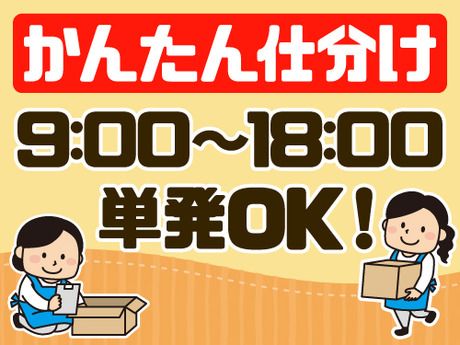 仕事内容 クリスマスギフトやお正月用品など、 冬の商品を扱う倉庫での仕分け作業です。 商品を指示通りに棚に分け、ラベルや数量をチェックして梱包します。 軽作業中心なので、未経験の方でもすぐに慣れていただけます! 【お仕事詳細】 ・商品の仕分け ・梱包作業 ・ラベル確認や数量チェックなどの軽作業 ◎こんな方におすすめ ・モノをきちんと分けるのが得意な方 ・ コツコツ作業が好きな方 ・体を動かす仕事が好きな方 扱う商品は小物が中心で、体への負担も少なめ。 シンプルな軽作業だから、コツコツ進めるのが得意な方にぴったり! 黙々と集中して作業したい方にも人気の現場です。 また、親子・兄弟・ご夫婦で働いているスタッフも多く、 「家族と一緒に働きたい」「都合の合う日に働きたい」という希望も大歓迎♪ <このお仕事の魅力ポイント!> ◎単発OK! ◎平日のみ・土日のみもOK ◎食堂・ポット・電子レンジ・ロッカー・自販機完備 ◎服装自由&自転車・バイク・車通勤OK 「いい雰囲気の現場で、マイペースに働きたい」そんな方にぴったりの環境です! 曜日や時間を固定して自分のペースで働けます。 <Q&A>入社までの流れについて Q. 応募してからどれくらいで働けますか? A. 応募から入社までは、1週間~通常2週間以内の現場が多くなっています。 Q. 急いで仕事を始めたいのですが対応してもらえますか? A. 即日面談やスピード対応が可能な案件もご案内可能! ご希望をお伺いして、最短で就業できるお仕事をご紹介いたします。 Q. 他の仕事と比較してから決めたいのですが、相談だけでも可能ですか? A. もちろん可能です。 複数の選択肢をご提示しながらご案内します! <Q&A>収入について 【お給料の支払いについて】 Q. 日払いは対応していますか? A. はい、日払いに対応しています。 前日の11時までに申請⇒当日の夕方までにお給料をお受け取りいただけます。 Q. 夜勤の場合でも日払いは可能ですか? A. はい、夜勤後も対応可能です。 お仕事終了後、朝11時までに申請⇒その日のうちにお給料をお受け取りいただけます。 Q. 前払い制度はありますか? A. ご利用可能です。 詳細は勤務先や就業形態によって異なりますので、ご相談時にご希望をお伝えください。 Q. 申請方法は難しいですか? A.どなたでもスムーズにご利用いただけます。 スマートフォンやPCからの申請も可能です!