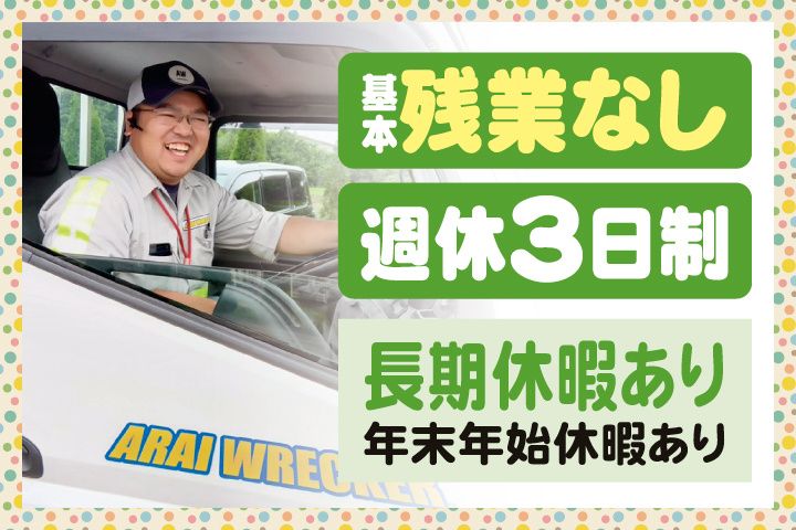 仕事内容 未経験から正社員へ!完全未経験から始めたスタッフも多数活躍中! 車のトラブル現場に駆けつけるロードサービスのお仕事です!10名以上大募集中! 〇週休3日制(+長期休暇あり) 〇基本残業なし(残業の有無相談OK) 〇未経験スタートでも月給24万円~ 〇普通免許があれば始められます 〇既卒・第二新卒OK 〇資格手当あり(資格取得奨励制度あり) 〇寮完備(家賃一部会社負担) 〇女性活躍中/産休・育休制度あり 〇男性も育休の取得実績あり 〇景気に左右されない業界なので長期安定 ▼路上でのロードサービス業務 まずはベテラン先輩スタッフの助手のような形で、 簡単な作業(サポート)からスタート! 自動車のトラブル対応や自動車整備のお仕事です。 〇事故車・故障車のレッカー移動 〇バッテリー上がり 〇パンク修理(スペアタイヤ交換) 〇ガス欠 など ▼特別な知識や経験が無くてもOK 「クレーンの資格?とか持ってないけど大丈夫かな…」そんな方もご安心を。 特別な資格が無くてもOK!普通免許(AT限定可)があればチャレンジできます。 既卒・第二新卒や社会人経験の浅い方も歓迎。 完全未経験から始めた20代・30代の若手スタッフも多数活躍中です。 さらに!資格取得奨励制度があるので クレーン、玉掛けなど他の資格もどんどん取得できます。 無資格・未経験から手に職つけて働きたい方にもピッタリ! ゼロから成長・スキルアップできる環境です。 ▼お休み多めの週休3日制(週4日勤務) 勤務シフトや残業の有無も相談できるのでライフスタイルに合わせて無理なく働けます。 「この日はライブがあるから休みたい」 「この日は友達と予定があるから早く帰りたい」 「稼ぎたいから無理のない範囲で残業はしたい」 そんな希望も気軽に相談OK! 週休3日でゆとりを持った働き方と安定収入が両立できます。 スタッフの人数に余裕があるので体調不良などの急なお休みもカバーしやすい環境です。 ▼性別不問!女性スタッフも活躍中 一般的には男性イメージの強い業界ですが、実は女性スタッフが増えている職場なんです。 産休・育休の取得実績あり! 当社は性別不問で女性の方でも安心できる、働き方の「新しいカタチ」を目指しています。 ▼寮完備で遠方の方も安心 今なら寮完備(社宅)で新生活応援中! 住み込みで働きたい方にもピッタリです! ※家賃一部会社負担いたします(応相談) ※埋まり次第終了の場合あり ▼お電話でのお問い合わせはこちら TEL. 029-843-3333(本社採用担当まで)