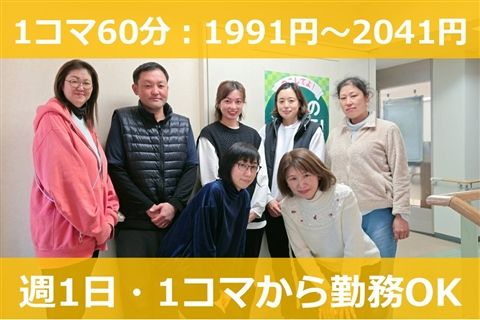 勤務時間 8:50~17:20の内、1コマ60分からOK ※休憩は勤務時間による ※件数、曜日相談可 ※WワークOK