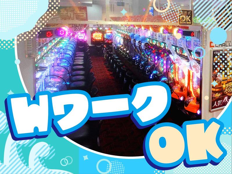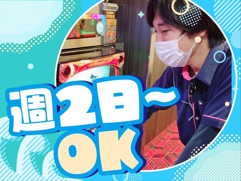 仕事内容 「初めてのバイト、どこにしよう…」という大学生も大歓迎! しっかり稼ぎたいけど、テスト期間は休みたい。 そんなワガママも叶います◎ 高時給×柔軟シフトで、効率よくお小遣いをUPさせましょう! 「新学期の予定がまだ決まっていない…」という方も シフトは柔軟に対応しているので、 お気軽にご応募ください♪ <お仕事内容>  ̄ ̄ ̄ ̄ ̄ ̄ ̄ ̄ ̄ ̄ ̄ ̄ ̄ ̄ ̄ ̄ ̄ ̄ ・店内の巡回 ・ホールへの案内 ・景品交換(レジ業務のような感じです) ・清掃 ・アナウンスなど 笑顔で明るい対応をお願いしますね♪ ▶大通り沿いの店舗なので、 人通りもあり出退勤時も安心♪ ▶店内は加熱式タバコのみ可なので、 においの心配なし♪ ▶近隣の常連様も多く、 クレーム対応等、ほとんどありません♪ <★勤務時間>  ̄ ̄ ̄ ̄ ̄ ̄ ̄ ̄ ̄ ̄ ̄ ̄ ̄ ̄ ̄ ̄ ̄ ̄ 1.16:30~23:30 2.18:00~23:30 ※週2日~勤務OK!! <★例:一日の流れ>  ̄ ̄ ̄ ̄ ̄ ̄ ̄ ̄ ̄ ̄ ̄ ̄ ̄ ̄ ̄ ̄ ̄ ̄ 16:30~出勤 朝礼後、接客や清掃など 18:00~ 30分休憩 20:30~ 15分休憩 21:30~ 閉店準備 22:50~ 閉店・締め作業 23:30~ 終礼 お疲れ様でした! <★あなたらしく働ける★>  ̄ ̄ ̄ ̄ ̄ ̄ ̄ ̄ ̄ ̄ ̄ ̄ ̄ ̄ ̄ ̄ ̄ ̄ ✔ 時給1300円~1700円 ✔ 週2日~OK/シフトの融通◎ ✔ ネイル・ピアスOK/髪型・髪色自由 ✔ 未経験OK/ブランクありも歓迎 ✔ 正社員登用実績あり! ✔ Wワーク・副業OK ✔安定収入をプラスしたい方にも◎ ✔学業と両立して働く大学生も活躍中! ✔長期連休は稼ぎたい派・休みたい派どちらも歓迎! ライフスタイルに合わせてシフト調整します。 <★未経験・ブランクも歓迎★>  ̄ ̄ ̄ ̄ ̄ ̄ ̄ ̄ ̄ ̄ ̄ ̄ ̄ ̄ ̄ ̄ ̄ ̄ ・「パチンコ店に入ったことがなかった」 というスタッフも多数活躍中♪ ・重たい玉運びなど、力仕事はありません♪ ・頼もしい先輩スタッフがイチから 丁寧に教えます!