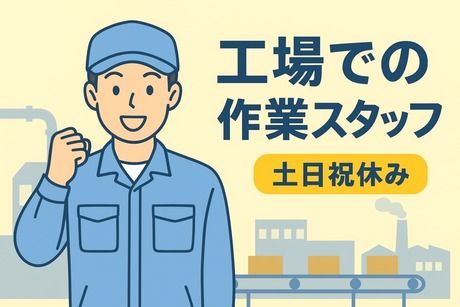 仕事内容 【仕事内容】 工場でのシンプル作業スタッフ募集! \未経験OK!もくもく作業好きにピッタリ♪/ お任せするのは、 樹脂材料を入れるフレコンバッグのクリーニング★ バッグにエアを吹きかけて汚れを落とし、口をキュッと縛ってパレットに載せるだけ◎ 単純&シンプル作業なので、すぐに慣れていただけます! ★☆★・☆★☆・★☆★・☆★☆・★☆★ ★土日祝休みでプライベート充実! ★ 残業ナシで定時帰宅OK! ★ 20代~50代男性スタッフ多数活躍中! 空調完備で1年中快適に働けます◎ うれしい土日祝休み♪ ♪.:\*:'゜☆.:\*:'゜♪.:\*:'゜☆.:\*:・'゜♪.:\*:・ 【アピールポイント】 ・20代~50代男性活躍 ・土日祝休み ・残業なし ・車通勤OK ・週払いOK 【勤務地の補足】 茨城県神栖市東深芝