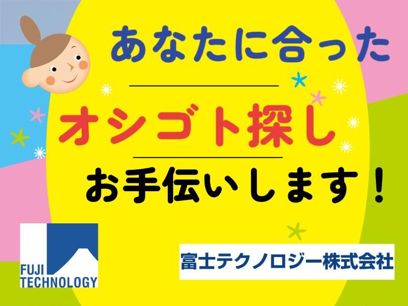 選考プロセス ここまで読んで下さりありがとうございます。 気になるお仕事がありましたら お気軽にご応募ください。 ↓ 来社またはWEBにて登録面談を行います。 30分程度で終わります。 ※登録済の方はこちらは不要です。 ↓ お仕事紹介をします。 気になることがあれ何でもご質問ください。 ↓ 職場見学 弊社営業担当と同行して実際に職場を見学します。 ↓ お仕事決定! ↓ 初出勤の日も弊社営業担当が同行するので安心ですね♪ 応募を迷っている方もまずはお問合せください。 あなたも富士テクでお仕事を始めましょう! 【登録地】 富士テクノロジー株式会社 大垣オフィス 所在地:岐阜県大垣市加賀野4-1-7 ソフトピアジャパンセンター 701 電話番号:0584-77-3781 WEB面談実施中!