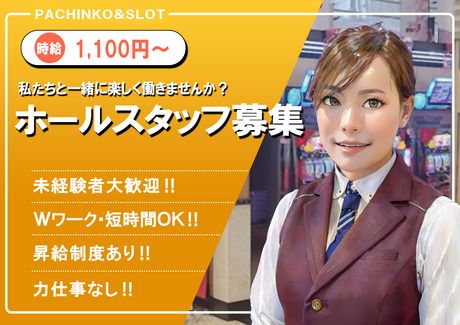 仕事内容 しっかり稼げる! ホール業務をお願いします! 未経験でも高時給1100円~! がっつり稼げます! 「パチンコの知識がない」という方も 分かりやすいレクチャーあり! シフト融通抜群! 授業や他の仕事が終わる時間も考慮します! パチンコの知識が無くてもOK!! お気軽にご応募下さいね!