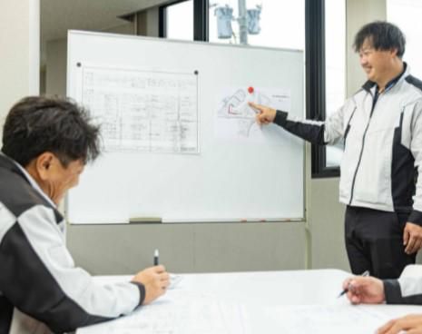 職場環境 20代後半~50代の社員が在籍。 女性施工管理者も在籍! 社内コミュニケーションが活発で、 分からないことはすぐに聞けますよ。 現場から施工管理へキャリアチェンジ 「仕事の流れよりも PC業務の方が分からんかった…」 という先輩も今では即戦力に成長◎