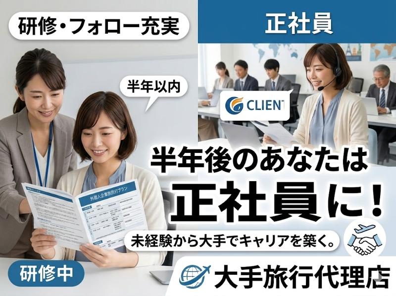 大手旅行代理店の法人営業(内勤中心)|月収29万円以上|正社員登用制度あり