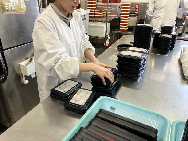 お弁当の盛り付けスタッフ