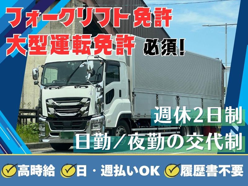 求めている人材 ✱人柄重視で採用!✱ ✨大型車とフォークリフトの 運転経験を活かせる! <必須条件> ⏩要大型運転免許 ⏩フォークリフト免許 <こんな方にピッタリ!> ◎安定収入を叶えたい方! ◎安全運転を徹底できる方! ◎地元で働きたい方 ・…━━━☆・…━━━☆・…━━━☆ ✅経験者・有資格者歓迎 ✅学歴不問 ✅フリーター歓迎 ✅ブランクOK ✅男性活躍中 ✅ミドル活躍中 ✅20代・30代・40代 ・…━━━☆・…━━━☆・…━━━☆ ✨こんな経験も活かせます♪ 大型ドライバー、トラック運転手 ダンプ、運転手ドライバー、配送配達 軽貨物ドライバー、タンクローリー トレーラー運転手、トラックドライバー 配送ドライバー、ルート配送、軽貨物 フォークリフト、カウンターフォーク リーチフォーク フォークリフトオペレーター etc...当てはまる方も大歓迎です! ・…━━━☆・…━━━☆・…━━━☆