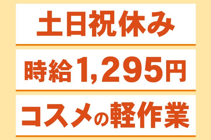 時給1,295円!月収19万円以上可能! 土日祝休み!カンタン軽作業で子育て世代から中高年まで活躍中
