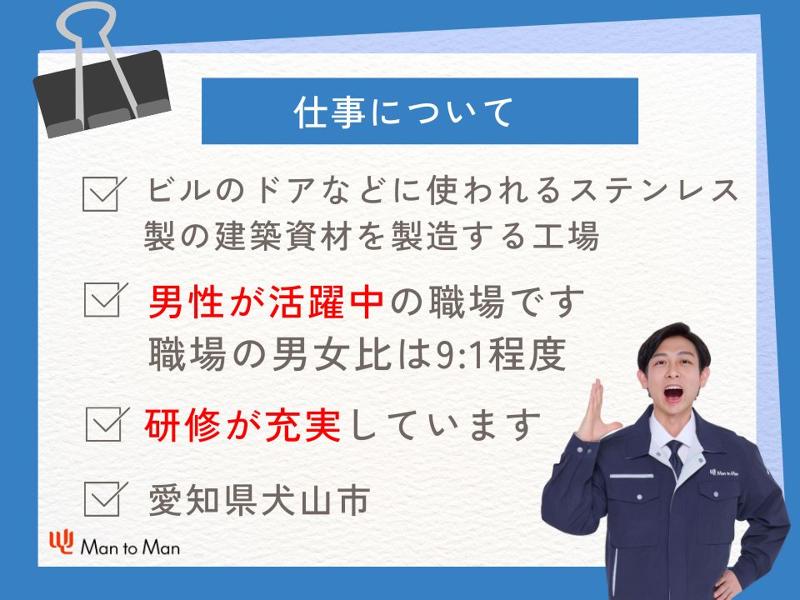 アピールポイント: 【日勤×月25万円以上!】ステンレス建材の組立や溶接