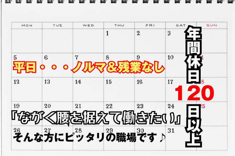 \未経験でも超安心♪/年休120日以上&残業ナシ!