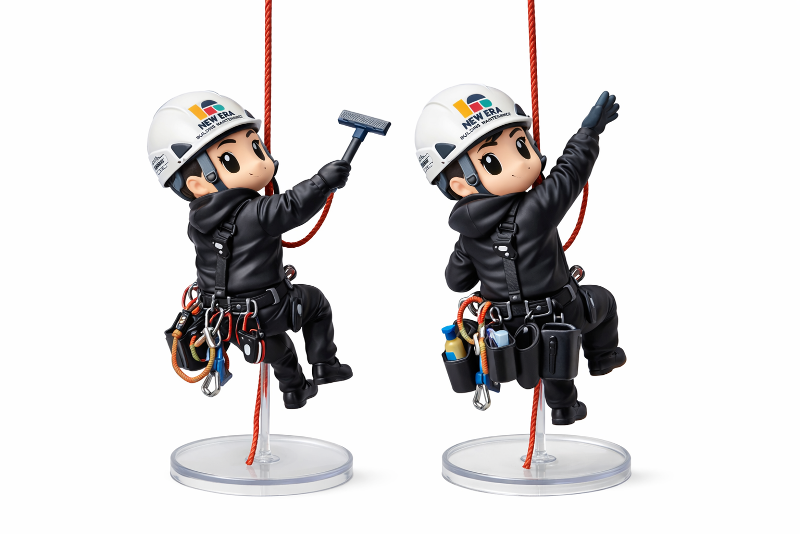 仕事内容: 株式会社NEW ERAビルメンテナンス 高所ガラス清掃会社 都内のオフィスビルのガラス清掃のお仕事です。 【主な仕事内容】 ⚫︎ビルに常設されているゴンドラに乗りガラスを清掃します。 ⚫︎ゴンドラがない建物はスタティックロープにてロープにぶら下がりガラス清掃作業をします。 ⚫︎店舗やビルの中でのガラス清掃作業もあります。