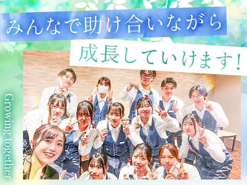 職場環境 \大学2年生の先輩へ密着!/ 私も初バイトで始めました!大学入学してすぐで友達もいなかったです…でも、みんなで一緒に最高の結婚式をつくるうちに大学より『バイト友達』が増えました♪テスト期間のお休みや就活支援もあるので助かります!一緒に頑張りましょう♡