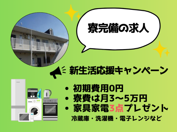 【月収30.8万可】日勤のみ!初期費用0円・家具家電付きの寮完備(徒歩10分)で新生活を応援!