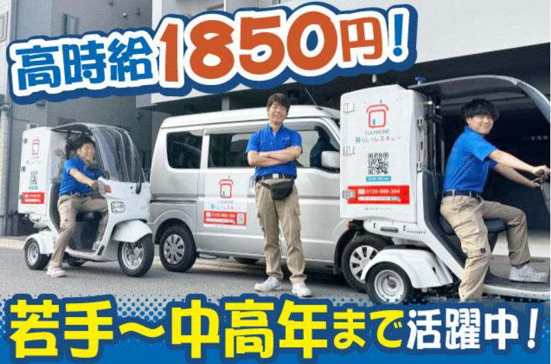 仕事内容 ―――――――・***・――――――― ⭐融通抜群♪週3日~日数相談OK! ⭐Wワークと両立しながら働ける ⭐20代~40代まで幅広く活躍中♪ ⭐高時給1600円以上で高収入も可能 ⭐移動時間も時給発生するので安定◎ ⭐入社お祝い金50,000円支給!! ※自動車免許を所持、かつ入社3か月経過後に支給 ―――――――・***・――――――― ――――――――――― 具体的な仕事内容 ――――――――――― ▼ゴミ出し作業(午前中) ビル・マンションの指定場所に 出されているゴミを、 トラックの回収場所まで運搬します! 作業中は、缶・ビンなどの分別も行います。 ※1件あたりの作業時間は約10分です。 ▼共用部の清掃(ゴミ出し後) エントランス、階段、廊下などの 共用部を清掃します。 基本的に1人で作業を行い、 1日あたり4~5件を担当。 ▼簡易点検などの付随業務 清掃とあわせて、 共用部の簡単な点検も行います。 【 勤務の流れ 】 巡回には三輪バイクを使用し、 ゴミ出し・共用部清掃を中心に、 1日で8~10ヶ所ほどの マンションの巡回をお任せ! 移動時もバイクを利用でき、 移動時間中も時給が発生します。 ――――――――― スケジュール例 ――――――――― 07:00…出社・準備 07:10…出発 07:30…現場到着後、作業スタート 09:30…最後の巡回先のゴミ捨て完了 10:00…入口など共用部の清掃 完了後、別物件へ巡回 12:00…昼休憩 13:00…入口など共用部の清掃 完了次第、別物件へ巡回 16:00…帰社・退社(お疲れ様でした!)