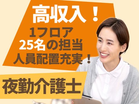 \高収入★人員配置充実!夜勤合計6名体制/ご入居者様25名の担当|週2回~|車通勤OK♪無料駐車場有