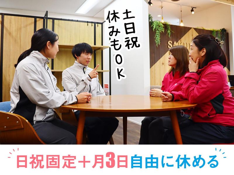 仕事内容 \⽇祝休み+好きな日に月3日休み/ 【⼟⽇祝休み】【日月祝休み】など お休みを自由にカスタマイズできる◎ 窓・サッシなどの住宅建材を扱う 既存顧客対応メインの営業大募集! ❖月給26万以上+誠実な営業ができる❖ ―・―・―・―・―・―・―・―・―・―・―・― 当社の査定評価は、売上成績よりも 顧客満足度が高い誠実な対応を重視♪ ノルマなし&行動を細かく管理されず 自由度高くスケジュールが組める◎ 「近所で週末に休める仕事を探してる」 「売上の為に嘘をつく営業はしたくない」 「いい加減な同僚や、売上しか見ない 会社はイヤだ」 という方は、ぜひ最後までご覧ください。 ─────────────────── ……⭐ 万全の待遇に自信あり♪ ⭐…… 社員の働きやすさを考えた仕組みが充実♪ ─────────────────── ✅完全未経験でも月給26万円スタート ✅日曜+祝日+フレックス休暇 ▶月3回好きな日に休める(土日祝休も可) ✅嫌な人や意地悪な人は0人です ▶会社全体の平均勤続年数16年 ✅親子2代で働く社員もいます♪ ✅スケジュールは自分で決定OK! ✅年1回じっくり面談後に昇給額決定 ▶売上より誠実な仕事ぶりを評価 ✅賞与は基本給でなく、総支給額ベース で支給。手当も含めてしっかり反映! ✅なんと社用車は1人1台支給 ┏━━━━━━━━━━━━━━━━┓ ❖さくら住建株式会社ってこんな会社 ┗━━━━━━━━━━━━━━━━┛ 1977年に創業し、住宅建材の販売・ リフォーム事業を展開。 大手建材メーカーとの直接取引により 「高品質×低価格」を実現しています。 ※社長も社員も全員「超良い人」です。 ────────────────── ………⭐お仕事内容について⭐……… ────────────────── 馴染みの工務店や建築会社に対して 窓・サッシを納品したり、ドア・浴槽 などの取付工事を手配すること。 これがあなたの役割です。 ✅既存顧客対応が中心! 基本お客様からのご依頼に対応する 形なので、未経験スタートも安心◎ …【仕事内容は大きく分けて2つ】… ①新築工事案件(窓やサッシの納品) ────────────────── ▨お客様から「このサイズの窓が欲しい」 といったご依頼を受ける。 ▨見積もり作成(主に他部署が対応) ▨OKが出たら納品 ▶窓やサッシは仕様が決まってるから フローはとてもシンプル♪ ②リフォーム案件の対応 ────────────────── ▨お客様から「玄関ドアを新しくしたい」 などのご依頼を受ける(一例です)。 ▨見積もり作成(主に他部署が対応) ▨サイズ確認のため現地調査 ▨OKが出たら取付工事開始→納品 ▶取付工事は全て職人さんが担当する ので安心です♪ ✅営業エリアは千葉全域。 ▶1人1台社用車を貸与されるので 移動は楽々♪ ✅1⽇の予定は完全に裁量で決定OK◎ ▶今日は外回り、明日は事務作業… など自由自在! ────────────────── ……⭐お給料事情について⭐…… ────────────────── 月給は26万円~35万円スタート。 売上よりも、顧客満足度の高さと 誠実な仕事ぶりが正当に評価される 人事制度が特徴です。 また賞与も基本給計算ではなく 総支給額計算で支給されるのも嬉しい♪ ―・―・―・―・―・―・―・―・―・―・― ▨入社1年目年収例:364万円 ▨入社3年目年収例:600万円 ―・―・―・―・―・―・―・―・―・―・― 他にも社用車貸与・携帯支給など、 営業に必要な備品はすべて会社負担◎ ┏━━━━━━━━━┓ ❖応募をご検討の方へ ┗━━━━━━━━━┛ 今後の事業拡大を見据えた増員募集です。 育成体制も万全なので未経験でも安心! 気になる方はぜひお早めにご応募ください◎