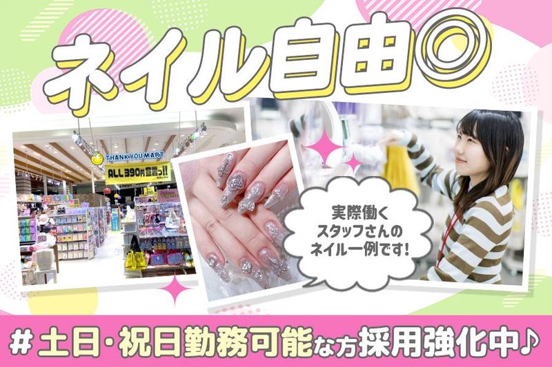 仕事内容 レジ・品出し・商品管理等 オシャレ&可愛い雑貨が 10~20代の女性に大人気の サンキューマートの求人募集です! 店内には様々な キャラクター雑貨 クリエイターやアニメとの コラボ商品などがズラリ。 新商品がどんどん発売され 見ているだけで楽しい店舗です! レジはポスレジなので ミスも少なく安心! ノルマや残業なし! 服装・ピアス・髪色・ネイル自由 自分らしいおしゃれで働けます! そんな働きやすい環境で レジ業務を始め 季節に応じたディスプレイや お客さまへのアドバイスなど 販売業務全般をお任せします! 未経験でも丁寧に指導します。 まずはお客様に御挨拶ができればOK! カワイイ雑貨が好き! サンキューマートの雰囲気が好き! おしゃれにこだわる! 自分らしく働きたい! そんな方にぴったりのお仕事です。 一緒にワクワクしながら働きませんか?? 事業内容 アパレル雑貨輸入販売※エルソニック(株)