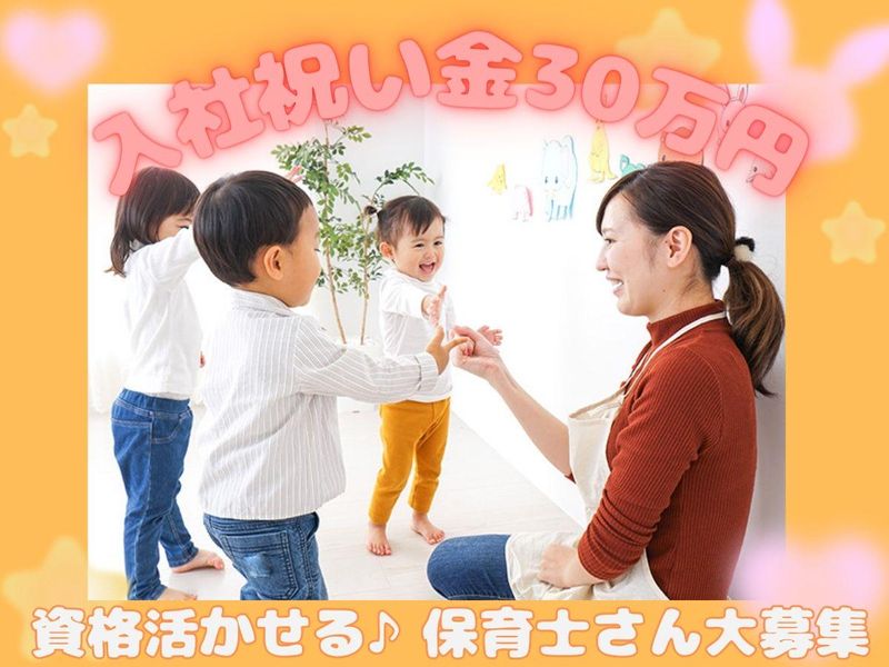 3月開園の綺麗な保育園✨託児制度・賞与有✨入社祝い金30万円
