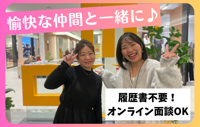 求めている人材 ・短期間で働きたい ・オシャレが好き ・収入を増やしたい ・販売職に興味がある ・人と接することが好き ・接客の経験を活かしたい (カフェや飲食店などもOK)