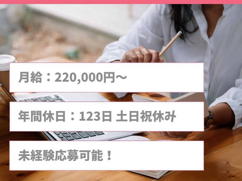 月給220,000円以上 給与詳細 ※基本給・固定残業代の総額 基本給:月給 18万9000円 〜 固定残業代:あり 1ヶ月あたり3万1000円(固定残業時間:1ヶ月あたり20時間) 固定残業時間を超えた勤務時間については別途残業代を支給する 【一律手当】 全員に一律で支払われる通勤・皆勤・家族手当金額:あり 全員に一律で支払われるその他手当金額:なし 交通費全額支給 賞与無し 昇給あり ※昇給は実績に応じて実施