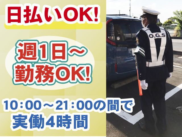 仕事内容 即日勤務OK!勤務終了後に現金での日払いOK! 70歳以上のシニア世代も活躍中! <注目ポイント> 〇週1日~勤務OK 〇1日4時間の短時間 〇給与保証有(現場による) 〇寮完備(即入寮OK) 〇定年退職者も活躍中 未経験者歓迎!中高年アルバイトさんも活躍中 【仕事内容について】 葬儀場・セレモニーホール等での 車両や歩行者の方の誘導などをお願いします。 勤務地は川口市内の葬儀場になります。 短時間の勤務なので身体への負担も少なめです! <当社で働くメリット!> 〇早く終わっても日給保証もあり 〇単発バイト・スポットワークもOK 〇即入寮OKの寮完備 〇日払い・週払い制度あり 〇正社員登用実績あり 〇冬は暖かい電熱入りヒーターベスト、夏は涼しい空調服全支給 【勤務について】 日勤のみ、週1日~OK 10:00~21:00の間で1日4時間の短時間 自宅から現場へ直行直帰OK! ちょっとしたお小遣い稼ぎや 単発バイト・Wワーク・副業にもピッタリ! <こんな方にオススメ> 〇施設警備アルバイト・パート経験者 〇60歳・70歳以上のシニアアルバイトさん 〇定年退職後も働きたい 〇スポットワークで働きたい 〇ブランクがある 警備未経験者も大歓迎! 事前に法定研修を行うのでご安心ください。 日払い・週払いのほかに、前払い・仮払いも相談可能です 詳細についてはお気軽にご相談ください! 【当社について】 https://www.o-g-s.jp/ さいたま市南区で中浦和駅から徒歩1分の場所に事務所を構える警備会社です 現在、埼玉県全域及び東京都北部地区に業務提供中となっております 平成元年の創業から38年。 創業当時から長く働いているスタッフも多数活躍しており、 警備の現場で皆様の安心・安全を守り続けています。 その他、さまざまな採用情報を提供しております https://entori.jp/o-g-s/ よりご確認ください お問い合わせは随時、お気軽にご連絡下さい こちらの掲載終了後も、応募受付可能です TEL:048-866-3711 /採用係