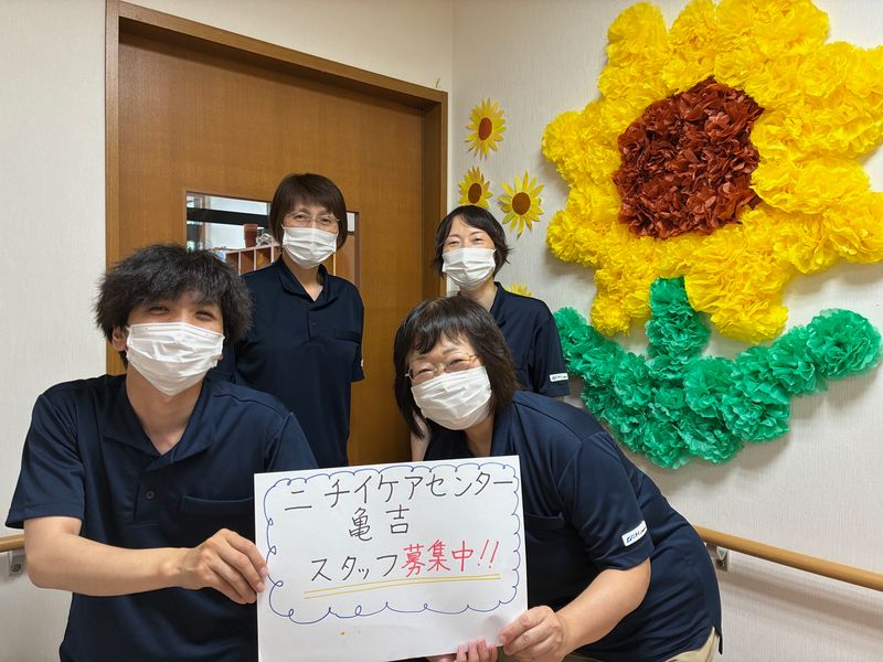 デイサービスの介護職員 未経験者も大歓迎!ニチイだから研修制度も充実?基本的な研修から、状況に合せた研修等多岐にわたる研修制度が整っています。 【Features 特長】 未経験・ブランクOK アクティブシニア活躍 扶養内勤務OK バイク・車通勤OK 新着求人 【仕事内容】 ≪特徴≫ ■お客様は通う曜日が決まっています ■同じお客様を定期的にサポートします ■入浴やレクリエーションなどを提供します≪1日の業務の流れ(例)≫ 9:00~ご自宅にお迎え (車椅子のままでも乗車できる専用車で、ご自宅とデイサービスセンター間を送迎) 10:00~入浴介助、レクリエーション補助、機能訓練実施 11:40~食事の見守り、介助/下膳、食後の配薬、服薬介助、口腔ケア ※交替で休憩 13:00~レクリエーション補助、機能訓練実施 (介護予防の要素を取り入れた機能訓練プログラム等で楽しく体操) 15:00~おやつの見守り、介助/下膳 ・歓談 16:30~ご自宅までお送り (楽しい一日を振り返りな がら、スタッフが専用車でお送り) ※1日の流れは事業所によって内容が多少異なります