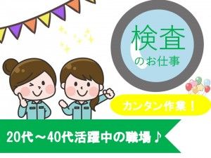 残業少なめ!カンタン検査作業!20代~40代の女性活躍中☆