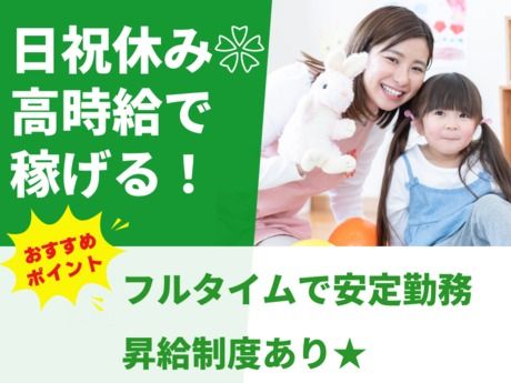 <★保育士資格者必須!>週5日勤務!日祝休みで家庭との両立もしやすい環境です♪