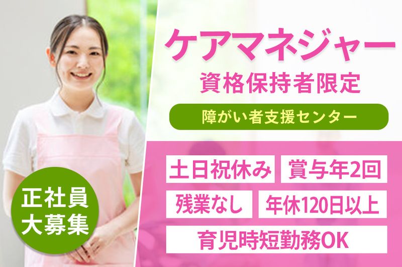 【主任介護支援専門員資格又はケアマネージャー資格必須】土日祝休み・年休120日・残業なし・育児短時間勤務制度あり