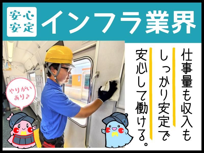 仕事内容 ――接客なし!電車のクリーンスタッフ ――JR東海グループ!安定企業の一員に 若手育成中のJR東海グループで 正社員も目指せます! ▼▲▼▲▼▲▼▲▼▲▼▲▼▲▼▲▼▲ 他とは違う!インフラ業界! JRグループならではの「清掃」だから 安定したシフト&仕事量=安定収入! ▼▲▼▲▼▲▼▲▼▲▼▲▼▲▼▲▼▲ 【応募のオススメポイント】 *未経験歓迎!経験より「意欲」を重視! *若手~ベテランまで幅広い世代が活躍中! *安定収入!月収例19万6999円+交通費 *契約社員でも賞与2回! *年収例272万円以上+交通費+各種手当 *半年で日給100円UP!その後も定期昇給 *月9~10日休みで年間休日115日! *家族手当もしっかり支給◎ *正社員登用制度あり!さらに待遇が充実! *お電話は、0584-78-9456まで! ―――――――――――――――――― JRグループならではのレア求人(^^)/ ―――――――――――――――――― 日常生活に欠かせないJR在来線で、 電車車両の中をキレイにする お掃除スタッフの募集です! 4~5名で1チームとなって 枕カバーの交換や窓・つり革を拭いたり、 エアコンの吹き出し口などを キレイにしていきます。 また「電車の顔」ともいえる 車両の前面をブラシで磨いたり、 車内の広告を交換したりも…! ※副業・兼業・掛け持ち不可※ 拭く・歩く…でしっかり体を使う作業◎ 重いものを持つ・運ぶというような 力作業はありませんが、 例えば、床や窓を拭く 力を使うシーンはあるお仕事。 その分キレイになったときの ”気持ち良さ”があるのもポイントです。 自分の持ち場は一人で担当しますが、 それぞれがテキパキと進めていく ”チームプレー”でもあるため、 皆でやりきる達成感が味わえますよ。 最初は覚えることが多いかもしれませんが 流れはルーティーンワークなので 慣れてしまえば働きやすい! ●じっくり丁寧に学べます● まずはゼロから基本の装着! *研修センターで 「清掃の基本」を学ぶ1日学習あり! *座学 *模擬体験 *安全教育 …など スキルを学ぶ場を多数ご用意しています。 「安全」のための細かなルールや ダイヤに合わせた作業スケジュールなど 一緒に覚えていきましょう! ------------------- 先輩聞いた【職場の推しPOINT】紹介! ------------------- ◎JR東海グループであること! 収入も安定して長く安心して働けます。 ◎普通は入れない車両基地が職場です。 鉄道というインフラを安全第一で仲間と 一緒に内側から支えるやりがいを実感! また、車両清掃といっても仕事内容は いろいろあるのも面白いですよ。 ◎JR東海グループという安定基盤があり、 働きやすい環境が整っていることが 10年以上続けてこられた理由です。 安全が最優先で危険な作業はナシ! 十分なお休みなど待遇面も満足です。