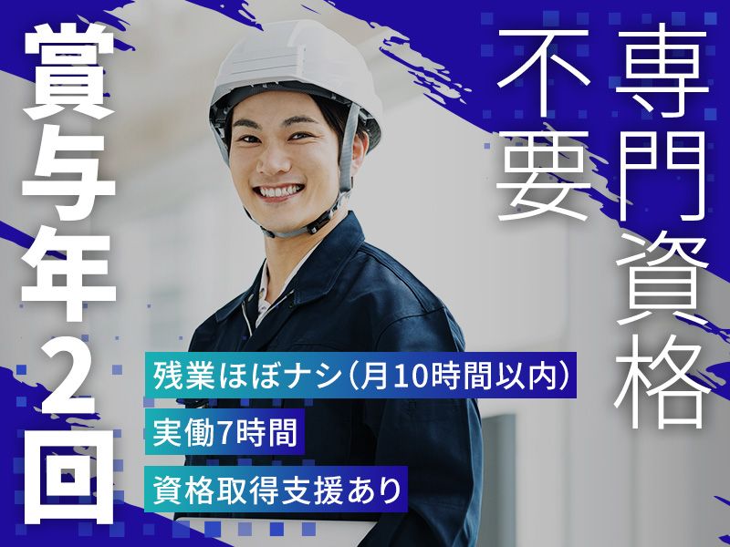 アピールポイント \ 働きやすい環境です / 土日祝休みありで 残業月0~10h程度 プライベートも充実できる✨ \ 公共8割の安定基盤 / 創業50年の企業で、基盤安定 賞与は年最大3回で、安定収入バッチリ 腰を据えて働ける✨ \ 成長を全力で支援 / 資格取得は会社が負担 経験に応じてキャリアアップ! 将来の年収UPも実現できる✨ 30代・40代活躍中!