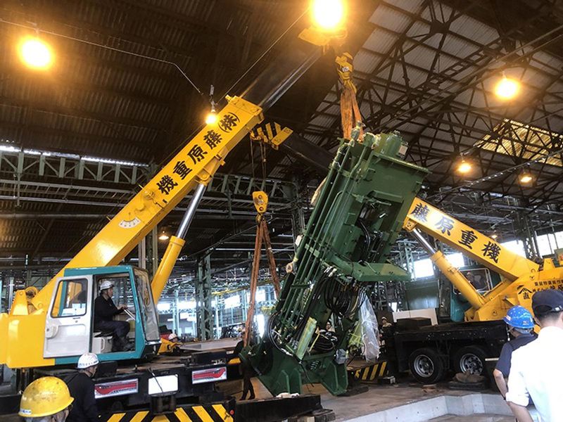 大型機械を運ぶ作業スタッフ(重量鳶名古屋)