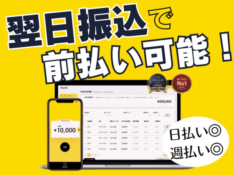 時給1,800円~2,000円 給与: ※スタート時給は面談時にご相談させていただきます! ※昇給ももちろんございます! お給料は日払い・週払い・月払いで対応可能♪(規定有) ⇒自分のタイミングで申請しましょう♪ 面談時に詳細をお伝え致します! 月収例 時給1,800円×8h×20日=月収28万8,000円 時給2,000円×8h×20日=月収32万円