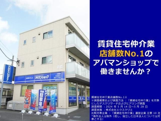 アピールメッセージ 未経験者歓迎!地域密着・白岡のアパマンショップ加盟店で、事務スタッフの募集です! 賃貸斡旋店舗数No.1のアパマンショップで働きませんか?業歴45年の安定企業・安心して働いていただけます。
