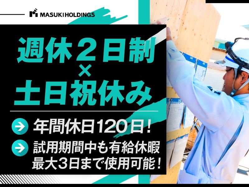 仕事内容 ╋━━━━━━━━━━━━━━━━━ ⭐未経験からチャレンジOK ↪経験は一切問いません! ⭐珍しい!マイアニバーサリー休暇あり ↪有給休暇を3日連続取得すると会社より補助金支給◎ ⭐有給休暇は入社日に付与! ↪試用期間中も最大3日まで使用可能!! ⭐安心の正社員雇用!年間休日120日! ↪資格取得支援制度もあります! ━━━━━━━━━━━━━━━━━━╋ 建築工事現場にて、 現場管理のアシスタント業務を 行なっていただきます! ■工事写真の撮影 ■書類整理、ファイリング ■現場場内の整理整頓 ■報告書の作成 ほか ◎豊富な現場があるので、アシスタントとして 経験を積みいずれは施工管理として現場代理人を 目指すことも可能です。 ◎指示された作業をこなすことが得意な方に向いたお仕事です。 ◎定時(17:00)帰宅、休日もしっかりとれるためワークライフバランスを 重視した働き方ができます♪ ━━━━━━━━━━ 入社後の流れ ━━━━━━━━━━ 「見て覚えて!」なんて言いません◎ 入社後はまず先輩について、 指示された業務をこなしていきましょう! 何件かこなしていると、「次はこうかな」 「この書類いるかな」と少しずつ わかってくるようになりますよ。 「アシスタントではなく自分で現場監督をやりたい!」と思う方には 現場監督への道も用意しています! 未経験からスタートした仲間が多いから、 みんなが気持ちをわかってくれます! 「ここはこうするとやりやすいよ」とか、 「これを先にやっておいた方がラクだよ」とか、 作業がしやすくなる ちょっとした裏技みたいなのも教えてくれます♪ ━━━━━━━━━ 1日の流れ ━━━━━━━━━ 8:00 業務開始 8:30 現場入り 現場監督の指示のもと書類整理やファイリング 12:00~13:00 お昼休憩 13:00 工事写真の撮影や現場の整理 16:00 報告書の作成 17:00 業務終了!→定時で帰宅♪