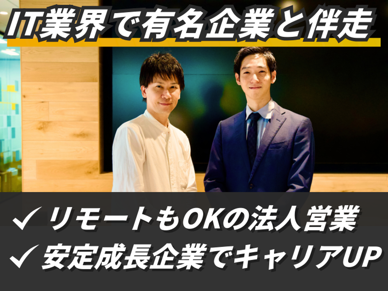 アピールポイント: 大手・有名企業の案件に挑戦できる! 誰もが知る大手飲食・金融・メーカーなどの案件を提案。 社会に影響力のあるプロジェクトに関われるやりがいがあります。 需要が大きい市場で思いっきり営業スキルを活かせる! IT・アプリ開発は今まさに拡大中の分野。伸び続ける市場で、営業スキルを存分に活かせる環境です。 安定成長企業で、自分らしく働ける! 最高益を更新中の安定成長企業。組織づくりや営業戦略に関わりながら、自分のアイデアを形にできるフィールドです。 SESも受託開発もどちらも経験! エンジニアを企業に紹介するSES営業と、自社で開発を受ける受託営業の両方に挑戦可能。営業としての幅が広がります。