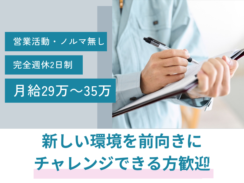 仕事内容 \✨新しい挑戦を始めよう✨/ 未経験から月給29万円スタート! 夜勤なし×完全週休2日でプライベート充実 30代・40代スタッフが活躍中! 全国のフィットネスクラブなどで 使われている業務用水素水サーバーの 【メンテナンススタッフ】を募集! ◆おすすめポイント◆ ✅営業活動やノルマなし ✅全国出張あり!新しい土地も楽しめる ✅月給27万円〜35万円+賞与あり ✅年間休日120日/趣味や旅行も充実 ✅30代40代活躍中! 【具体的なお仕事】 業務用水素水サーバーの設置・点検・修理を担当 ◎設置や入替時の日程調整 ◎部品交換・定期メンテナンス ◎お客様からの問合せ対応 ◎保守スケジュールの管理 ★夜勤なし!プライベートも充実 ★全国出張あり!新しい土地を楽しめる ★チームで協力しながら進めるので安心 ――――――――――――――――――― ⭐入社後は… 先輩がマンツーマンでしっかりサポート! 同行研修で流れを学び、 少しずつスキルを身につけられます。 ⭐キャリアパス チームを引っ張るリーダーや、 専門スキルを磨くエキスパートなど、 将来のキャリアを自分で描けます。 ―――――――――――――――――――
