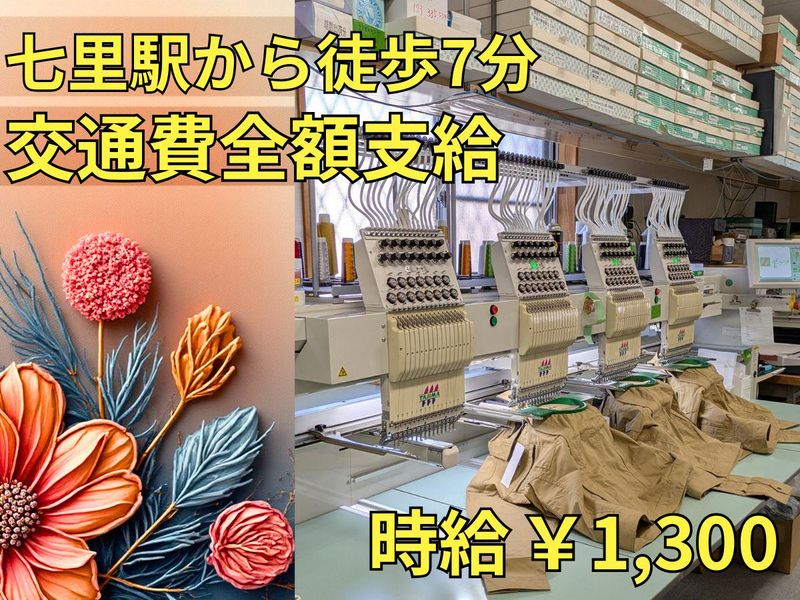 仕事内容 ▶学校の制服やユニフォーム、作業着などに刺繍を入れるお仕事 ミシンを使ったことがない方も大丈夫! ▶お任せするのは、 服に枠をはめて機械にセットし、ボタンを押すだけ。 あとは自動で刺繍が進むので難しいことはありません♪ ▶仕上がった商品をたたんで袋に詰める作業までお願いします! ▶現在活躍中のスタッフの90%以上が未経験スタート! 同じように「初めて」「分からない」から始めた仲間ばかりなので 分からないことも気軽に相談できます◎ ▶接客がないので、 ✅「コツコツ集中して作業するのが好き」 ✅「刺繍や手芸に興味がある」 そんな方にピッタリのお仕事です!
