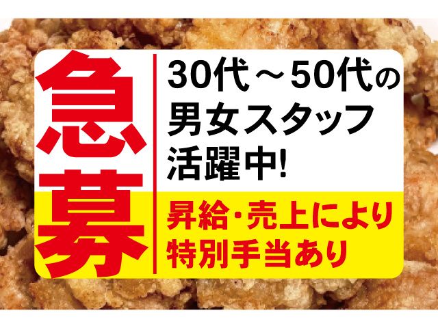 仕事内容 【パート・アルバイトさん急募】人気からあげ移動販売スタッフ! 「自慢のからあげ」を移動販売車で提供する、ユニークで活気あるお仕事です! 水~金は14:00~20:30の短時間勤務 土日はしっかり10:00~20:30で働けます。 「昇給あり」「売上により特別手当あり」 頑張りや成果はしっかり評価! あなたの頑張り次第でさらなる収入アップも可能です! 【仕事内容】 からあげの移動販売スタッフ(パート・アルバイト) 普通免許(AT限定可)をお持ちであれば、どなたでもスタート可能! 「宇都宮市」「鹿沼市」「日光市」のスーパー・イベント等での調理・販売業務を行います。 仕込み済みの鶏肉を移動販売車に積み込み、揚げてお客様へ販売提供します。 現場で揚げる鶏肉は、店舗で仕込み済みを用意しており、手間もかからず品質にも自信あり! 30代・40代・50代の男女スタッフ活躍中! 定年は無いので長くご活躍いただけます。 【未経験者大歓迎!】 技術や、調理の経験ゼロでもOK! 入社後に丁寧な研修を用意していますのでご安心ください。 接客のお仕事でもあるため、お話好きな方、営業経験がある方などに向いています。 必要な資格は、普通免許(AT限定可)のみ。 ※当社の規定により喫煙者の方はご遠慮させていただいております。 スーパーでの唐揚げの移動販売車、イベントでの飲食販売、弁当仕出し、手作りにこだわった飲食店です。幅広い業態を持ち、安定して働くことのできる職場です