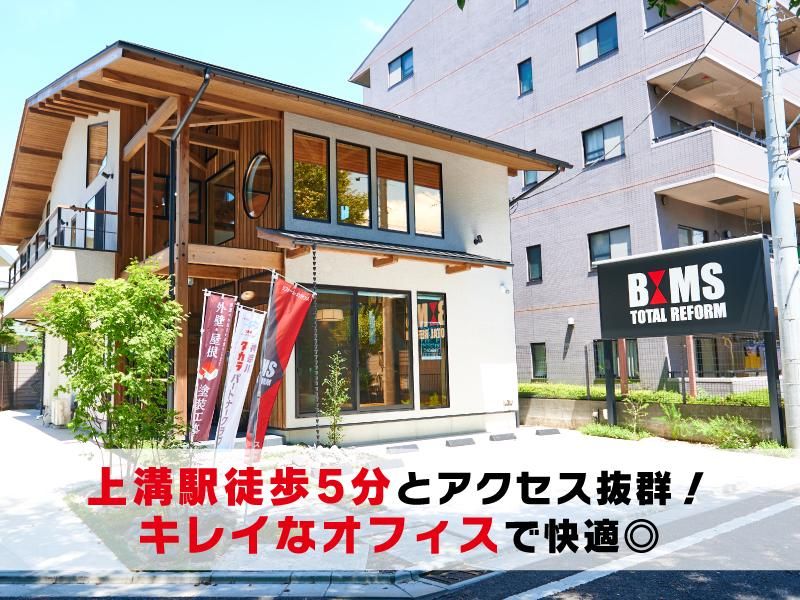 仕事内容 / 同業他社からの転職者の定着率100%! 職場見学も受付中! TEL:042-730-3200 HP :https://www.bims.co.jp/ \ そこそこの収入でいいから 毎日ちゃんと家に帰りたい。 転勤や出張もない環境で、 家族と過ごす時間が欲しい。 …そんな希望を叶えませんか? ================== *日勤・残業少なめ・ノルマ一切なし *有給取得率良好&連休の取得もOK *長期休暇あり(年3回&各1週間程度) *社用車通勤&現場への直行直帰もOK *長期の案件なし・転勤なし・出張なし *月給27万円~・年収450万円可 *60代のミドル~シニアの顧客が中心 ================== 神奈川県を中心とした個人宅の リフォームを行う当社。 今回は反響100%でリフォームの 施工管理を担当するスタッフを 増員募集いたします。 お仕事の内容は ・日程調整・打ち合わせ ・リフォームの進捗管理 ・資材発注・管理 ・納期・予算の管理 ・現場職人とやり取り など。 キッチンや浴室、洗面、トイレなど 水回りのリフォームを強みとしており、 1~4日で終わる案件がほとんど! 件数も1人月20件程度のため 毎日ちゃんと家に帰れる環境です! 現場監督や施工管理の経験はもちろん 職人や建築関係の経験があればOKです。 OJTでイチから丁寧にお教えするので 経験が浅くて心配な方もご安心ください。 現在事務2名を含む、11名が活躍中! 過半数が10年以上在籍しており 家庭での時間を大切にできると、 パパさんも多数活躍しています。 ―――――――― お仕事の流れ(とある1日) ――V――――― 9:00前には現場に着くように移動します! 9:00~12:00 1件めの現場 12:00~13:00 昼休憩後、2件めの現場へ 13:30~16:00 2件めの現場 16:00~18:00 事務処理 現場では、工事の下準備(壁に傷がつかない ように養生したり荷物を運んだり)や 職人さんのサポート、写真撮影をします! 事務処理は、撮ってきた写真の整理や 報告書の作成をおこないます。 ―――――――― 先輩スタッフよりあなたへ ――V――――― まったく違う職種でしたが アットホームな雰囲気と 働き方に惹かれて転職しました。 とにかく自由度が高く、 子どもと過ごせる時間が 大幅に増えたと感じています。 早いもので今年17年目。 自分で予定を組めるのが 働きやすいポイントですね。 経験や知識に自信がなくても、 会社と一緒に成長していきたい 意欲がある方なら大歓迎です! ぜひお気軽にご応募ください! ――――――― 長期安定を実現 ――V―――― 事前の打ち合わせでは 細部までヒアリングすることで、 追加料金の発生を極限。 結果、高い顧客満足度と 信頼が口コミとなり リピーターや紹介での ご依頼がほとんどです。 おかげさまで 長年エリアを広げずとも 安定した業績を築けています。 ――――――― こんな方にはオススメしません! ――V―――― 100万円以下の細かな案件が多いので 「ダイナミックなトータルリフォームが したい」という方には向いてないと 思います。また小規模な会社なので、 施工管理がカンタンな図面作成や営業など も行うため、縦割りがしっかりした会社で 働きたい方にも向いてないと思います。 ――――――― こんな方にぜひ! ――V―――― リフォームにかかわる様々な工程に 携わりたい方やDIY好き・手先が器用な 方にもおすすめ!網戸の張替えなどは 自ら行うこともあるんです! リフォームはすでに人が住んでいる 状態で作業するので、コミュニケーションが 得意な方にもピッタリです◎