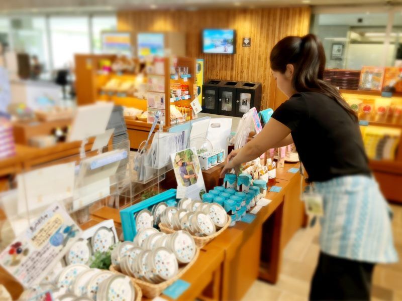 「みやこ下地島空港ターミナル」のお土産店、免税店の販売スタッフ
