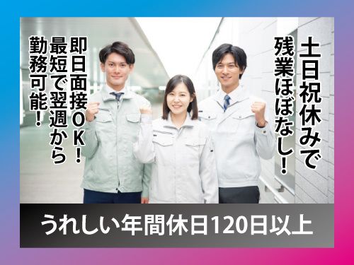 勤務時間 8:30~17:15(実働8時間・休憩45分) ※月平均残業時間10時間程度