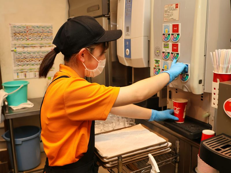 カウンターでの食券の受付・ドリンクデザート提供