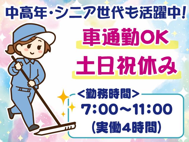 勤務時間 7:00~11:00(実働4時間) 勤務/週5日(月~金)