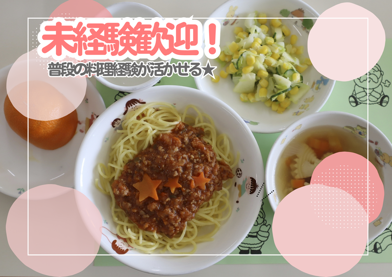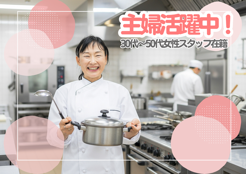 求めている人材 未経験・ブランクある方も歓迎! 女性活躍中! スタッフ同士、 お互いにフォローしながら 業務を進めております。 普段ご家庭で料理する方は 覚えやすいお仕事です。 調理業務未経験の方、 実務経験の少ない方、 ブランクがある方、 転職を考えている経験者さん・・・ 皆さん大歓迎です! まずはあなたの 「やってみよう」を応援します。 ご応募心よりお待ちしております!