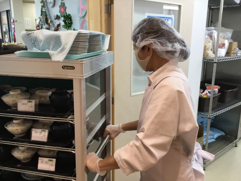 仕事内容 サービス付き高齢者向け住宅での給食業務を行います。 「温め」「盛付け」「洗浄」中心です。 介護や調理などの専門的な資格や 知識がなくても働くことができます。 調理済みの冷凍パウチを手順に従って解凍や加熱します。 ご飯やみそ汁は、施設で調理します。 お食事の提供は、デイサービスの御利用者様、 ご入居者様に限られますので、 飲食店やレストランとは異なり、 提供する食数や時間帯に大きな変動はありません。 台所仕事が好きな方、 人に喜んでもらえる仕事がしたい方であればやりがいを感じられるお仕事です。 具体的には... ・ 温め作業(冷凍パウチ) ・炊飯、汁物づくり ⇒ご利用者様に合わせたお米のやわらかさに炊飯、汁物へのとろみ付けをします。 ・きざみ作業、盛付け ⇒温めた食事の分量が決まっているので、しっかり量って盛り付けます。 ・ 配膳・片付け ・ 食器などの洗浄 ⇒食洗機に入れ、食器乾燥機で乾燥させます! <1日のお仕事の流れ 一例> 【10:30】 始業 【10:45~12:00】 昼食準備・調理 【12:00~12:10】 配膳 【12:10~13:00】 調理場の片付け 【13:00~13:30】 下膳、食器洗浄、清掃、準備 【13:30】 終業 【16:00】 始業 【16:15~17:30】 夕食準備・調理 【17:30~17:40】 配膳 【17:40~18:30】 調理場の片付け 【18:30~19:00】 下膳、洗浄、清掃、準備 【19:00】 終業