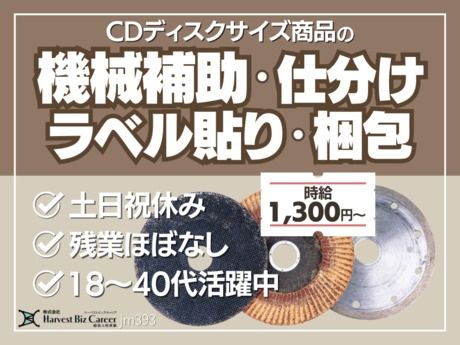 仕事内容 具体的には・・・ ★CDのような形をしたホームセンターなどに売られている製品の 製造機械の補助や出来上がった製品の 倉庫業務(ラベル張り、梱包、仕分けなど)をおこなって頂きます。 ※フォークリフト有資格者時給+100円 ★職種が選べる案件になりますので 今までのキャリアを活かして働きたい方、 この作業からやってみたいなど臨機応変にご紹介出来るお仕事です。 ★駐車場から現場まで徒歩2分、 作業服出勤もOKで大型工場、 倉庫様と比較すると朝は余裕のある案件です。 〇仕分け業務・ラベル張り業務・製造機械補助・フォークリフト作業 【4職種から選べる案件です!】 ★4部署合わせて10名以上の大募集、 現在全体で20名ほどの従業員様がご活躍されている現場で少人数の作業場が好きな方に適したお仕事です。 ★残業は基本的に0なのでライフワークバランスがとりやすいお仕事です。 ★大手の工場様よりも細かな仕来たりなどはなく、働きやすい派遣先様です。