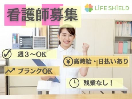 仕事内容 【お仕事内容】 \看護スタッフのお仕事!/ 具体的には…お薬の管理や血圧の測定など。 介護業務と完全分業のお仕事先も案内できますのでお気軽に相談くださいね♪ ご利用者様が過ごしやすい生活をおくることができるように、日々のサポートをしていただきます。 【勤務地】 大阪府吹田市豊津町 江坂駅周辺 ほか、勤務地多数あり! 特別養護老人ホーム・有料老人ホーム・老人保健施設・グループホーム・デイサービス・サービス付き高齢者向け住宅など ご希望条件にあった施設をご紹介します! 【専属コーディネーターによる万全のサポート体制】 派遣スタッフの声 30代/女性/看護師 細かい希望までしっかり叶えてもらえたおかげで仕事、子育て、自分の時間まで充実しています。 【自由な働き方が叶う♪】 高時給でWワークも◎週3~でもOK!あなたの希望の働き方を叶えます。 他業種とのWワークや、高時給で働きたいなど あなたの希望に合ったお仕事先を専属のコーディネーターがご提案します。 条件面だけではなく、施設の雰囲気や人間関係なども踏まえてご提案しますので、安心して相談してくださいね♪ 【LINEで簡単登録♪来社不要でスグにお仕事をご案内!】 ライフシールドでは、LINEでのやり取りを行います。面倒な来社登録や書類の作成は要りません。 早く働きたい、働きながら次の仕事を探したい、そういった皆さんの声に応えるためです。 最短で当日にお仕事先が見つかることも。専属のコーディネーターにお任せください!